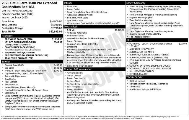 2026 GMC Sierra 1500 Pro 4WD 10-Speed Automatic 10-Speed Automatic, 4WD, Jet Black Vinyl. Price includes: $1750 - Buick & GMC GM Financial APR & NCC Consumer Cash Program: $1750 discount and 5.99% APR for 36 months. $30.42 per $1000 financed. Available to well qualified buyers who finance through GM Financial. XHD, NCC. Exp. 04/30/2026